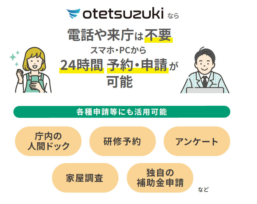 otetsuzukiは日々アップデートしているため、今までは機能的な制約で受付できなかった手続きや窓口についてもオンライン化できる可能性があります。現時点で500以上の手続きにotetsuzukiを活用していますが、今後もオンラインでの手続きや予約窓口のオンライン化を拡大していきたいと考えています。